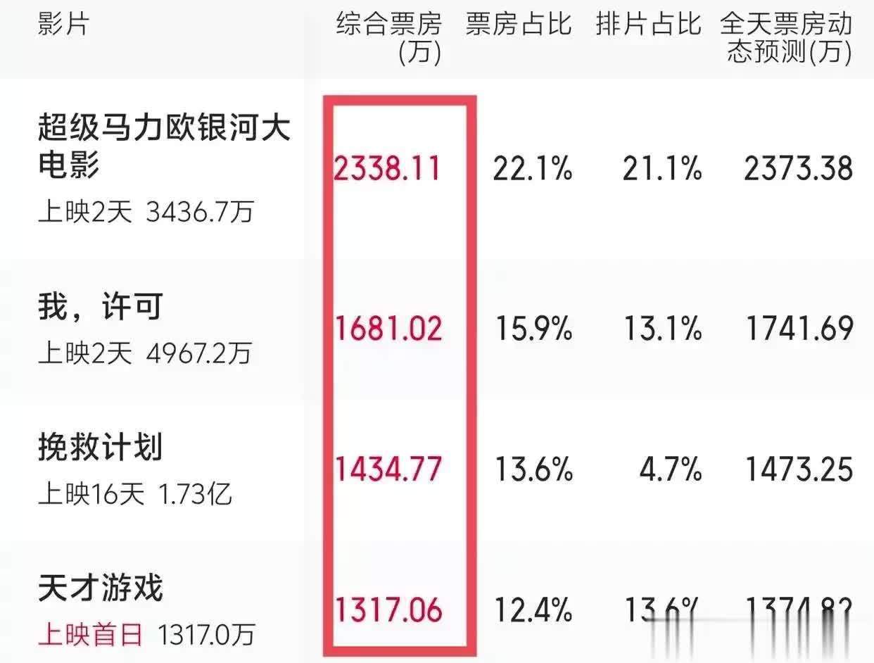 阻挡发文时间,《超等马力欧》爆发力惊东说念主,以2338.11万的概述票房从《我许可》的手中夺下日票房冠军的宝座。