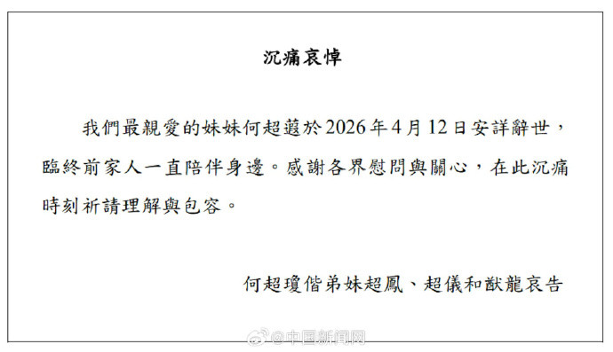 据港媒报谈,“赌王”何鸿燊儿子、信德集团扩充董事何超蕸本日(12日)肃清,临终前家东谈主奉陪在侧。由何超蕸出任扩充董事的信德集团,一分彩app下载千里痛利弊何超蕸肃清,并附上家东谈主通告。(中国新闻网)