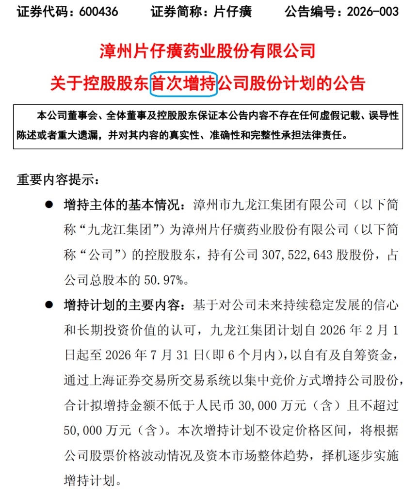 值得注重的是,片仔癀在公告标题中辅导,这是控股激动初次增握公司股份。
