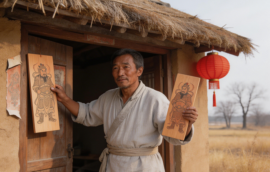 咸熟年间《郏县志》记录:“除夕,门张神荼郁垒像,施春帖于枨。”