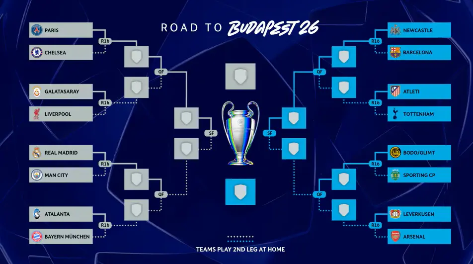 巴黎与切尔西之间的胜者,将在八强战里对阵利物浦与加拉塔萨雷之间的胜者。切尔西(2次)、利物浦(6次)、巴黎(1次)也曾9次夺冠。