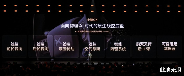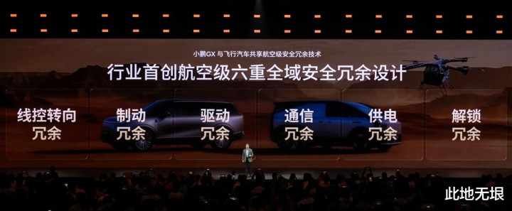终末是冗余安全,小鹏GX始创六重全域安全冗余,掩饰转向、制动、启动、通讯、供电、解锁六大中枢,小鹏示意该期间与飞行汽车同源,达ASIL-D最高功能安全品级。其中线控转向具有四重备份,随便三个系统失效车辆仍可安全靠边;制动具备四重冗余,管路/踏板失效车辆仍能刹停;还有启动双重冗余,单电驱故障毫秒级接受,高速不失控。