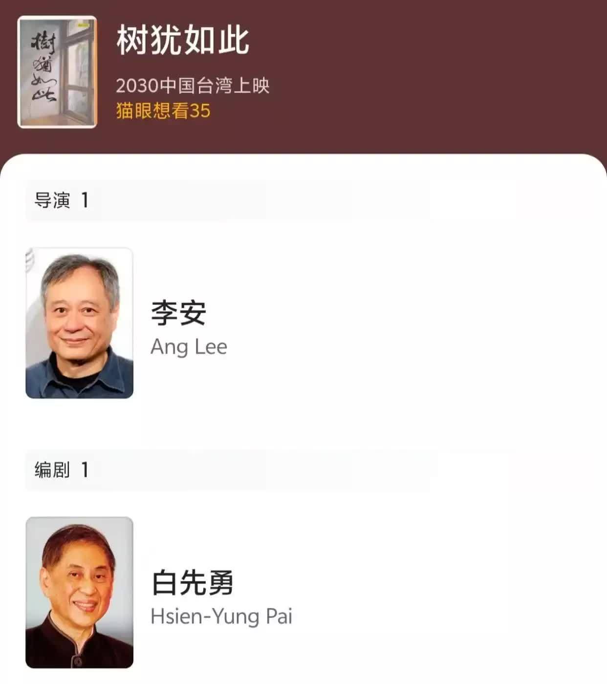 该片在豆瓣上查不到干系信息,不外在猫眼上却裸露会于2030年上映。