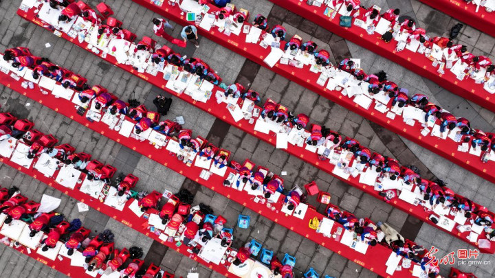 2026年4月11日,“至成杯”三穗县第四届千名青少年现场字画大赛在贵州省黔东南苗族侗族自治州三穗县将军广场举办,全县各中小学一千余名学生参赛。这次步履旨在激发开拓雄伟青少年爱好故国、爱好家乡、爱好生涯、爱好文化,一分彩app官方下载满怀心思勇当新期间社会主见文化确立者和交班东说念主。(杨剑摄/光明图片)