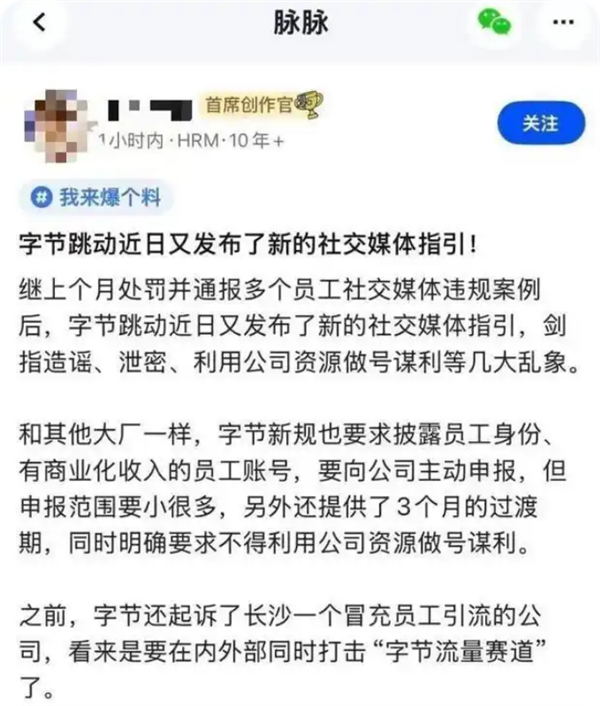 此外,新规强调,严禁职工以任何方法哄骗字节逾越的公司资源,运营自媒体账号并从中营利。