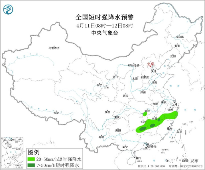 展望4月11日08时至12日08时,江南中部等地的部分地区将有8级以上雷暴大风或冰雹天气,其中,湖南南部、江西东部等地的部分地区将有10级以上雷暴大风,最大风力可达11级以上;江南中部等地的部分地区将有小时雨量大于20毫米的短时强降水天气,金佰利国际娱乐官网入口其中,湖南南部、江西中部等地的部分地区小时雨量大于50毫米。