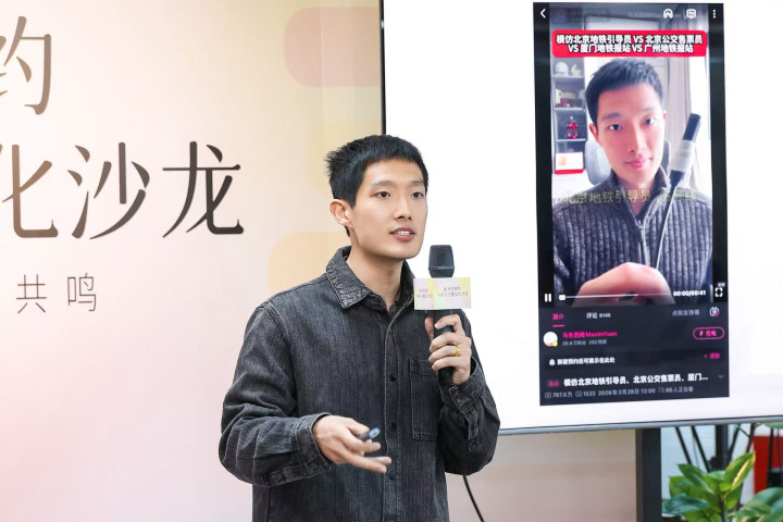 话语文化类博主马克西姆在共享自媒体创作心得。中中语化促进会主理与主播服务委员会供图