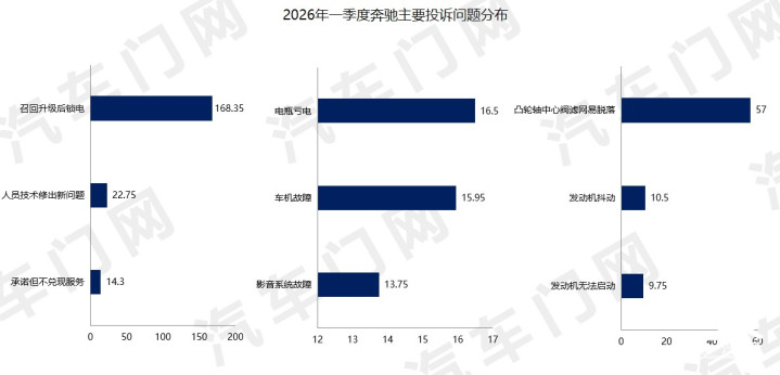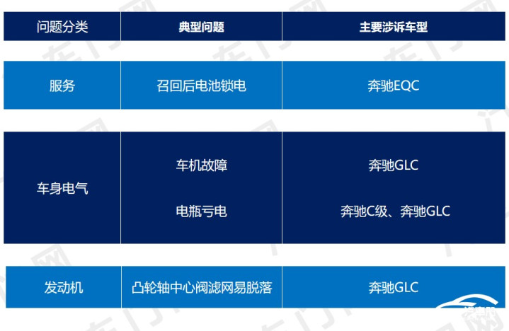 进一步来看,疾驰的主要投诉问题是工作类,调回升级后电板锁电、东说念主员技艺修出新问题、快活不罢了工作皆是典型施展。而发动机类投诉问题主要施展为凸轮轴中心阀滤网易零散和发动机抖动,问题大部分出当今疾驰GLC上。车身电气的问题相对来说比较平衡,车机故障和电瓶亏电是疾驰的“高发通病”。