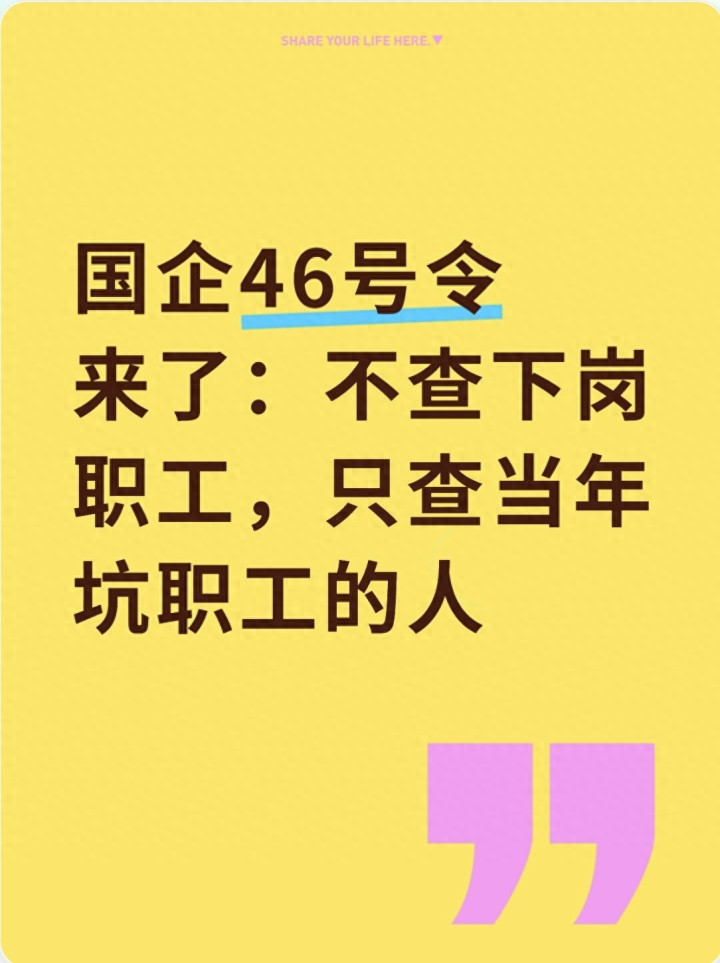 当年哄骗权益坑职工、侵吞国有财富的东谈主,此次要为我方的活动付出代价,果真远离“谁违法、谁担责”,还国企范畴一派清风浩气。