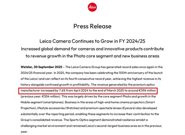 {jz:field.toptypename/}其次,增长可能触顶了,上一财年徕卡的营收增速放缓到了 7.6%,固然还在涨,但势头显现不如前几年猛。