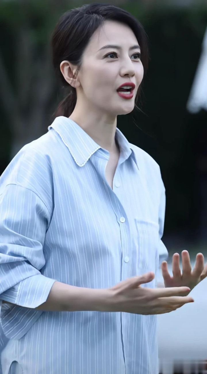 这两天,上海鲁迅公园的草坪活动区,一抹浅蓝身摄影当吸睛,演员高圆圆身着浅蓝色条纹衬衫搭配同色系阔腿裤,低马尾衬出暖热气质,正与身旁的小女孩互动,笑貌明媚如春日暖阳,须臾成为现场焦点。